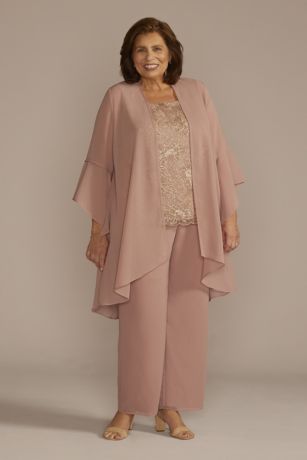 Plus Size Three-Piece Lace and Georgette Pantsuit