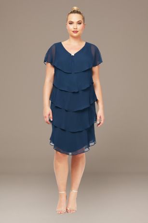 Plus Size Tiered Capelet Chiffon Dress