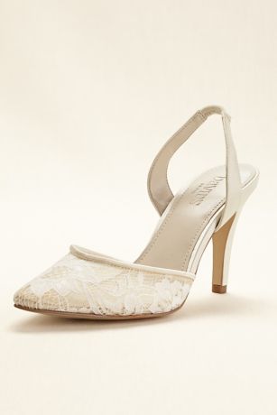 - Slingback heel features illusion lace.