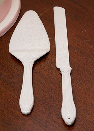 A subtle lace pattern is embossed on this knife and server set, giving it a delicate beauty. With such a detailed design, this set is sure to amaze everyone and add a touch of whimsy to your cake cutting. This set can also serve as a heirloom piece to display and pass down to loved ones.