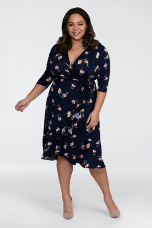 Printed Cascading Plus Size Wrap Dress