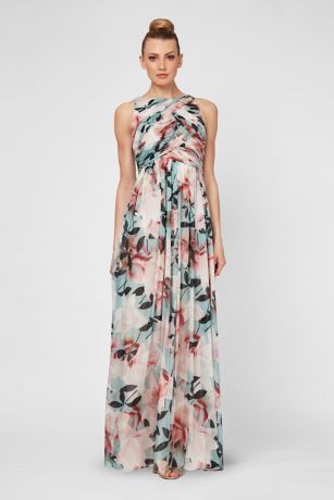 Topped with a ruched, high-neck bodice and finished with a flowy A-line skirt, this chiffon dress is a stunning choice for the mother of the bride or groom.