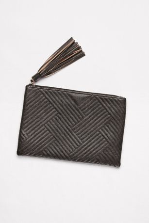 Quilted Faux-Leather Tassel Clutch