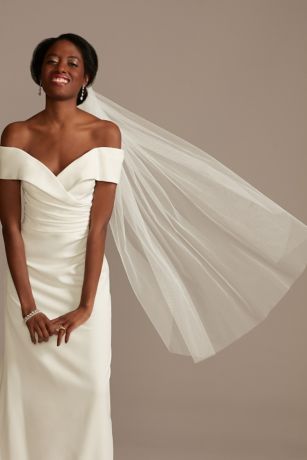 Crafted of the softest, silkiest tulle ever, this raw-edge mid-length veil floats gracefully atop your gown.