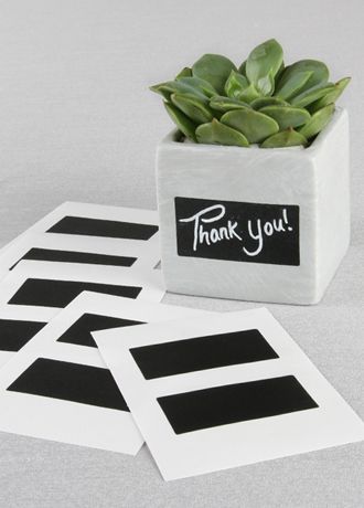 Customize your wedding with these fun rectangle shaped chalkboard stickers. Use them to label favors, glassware, gifts, and more! They are easily removable from most surfaces and can be wiped clean for reuse.