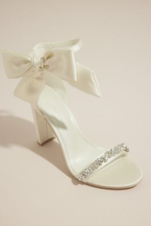 Removable Ankle Bow Crystal Strap Heeled Sandals