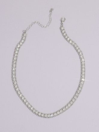 Evoke classic elegance in this collar necklace, featuring a row of round crystals bordered by smaller strands that twinkle with every move.