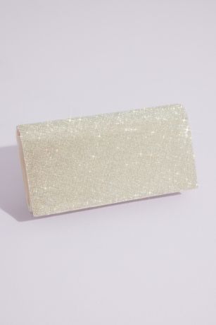 This satin clutch is topped with an array of rhinestones so sparkly you'll be in the spotlight with every step! It features a removable chain strap and a flap-front closure.