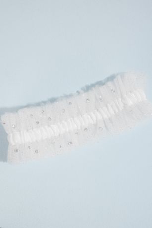 This soft satin and tulle garter adds just the right touch of sparkle to your bridal ensemble with rhinestone embellishments.
