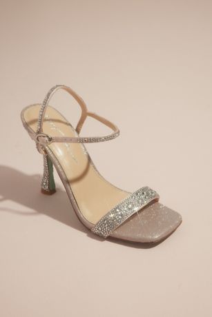Embellished with light-catching crystals, topped with skinny straps, and finished with flared heels, these sandals make every look sparkle.