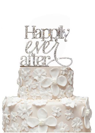 This gorgeous Happily Ever After wedding cake topper is fully set with hundreds of brilliant rhinestones that will sparkle and shine on your wedding day!  Cake topper comes complete with food-safe prongs that secure it firmly into your wedding cake.
