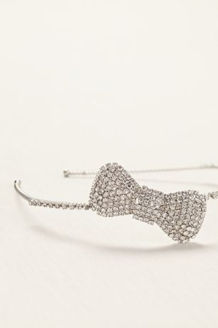 - Headband features a beautiful bow adorned with sparkling rhinestones.