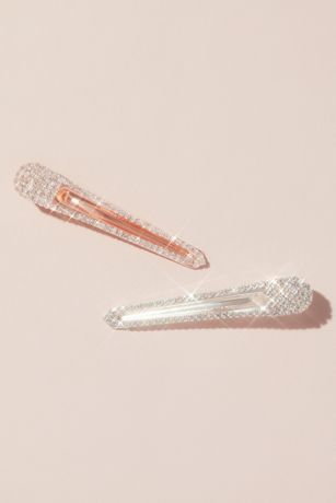 Shimmering rows of rhinestones adorn this set of two hair clips, adding chic sparkle to long waves or elaborate updos.