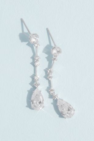 Linear and lovely, a cubic zirconia tear drop hangs below tiny clusters of sparkling stones,