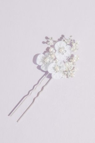 Dot your wedding-day 'do with this pretty pin, featuring ribbon flowers and dazzling crystals.