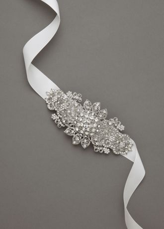 - Ribbon features casted rhodium floral side motif that is accented with gorgeous pave crystals.