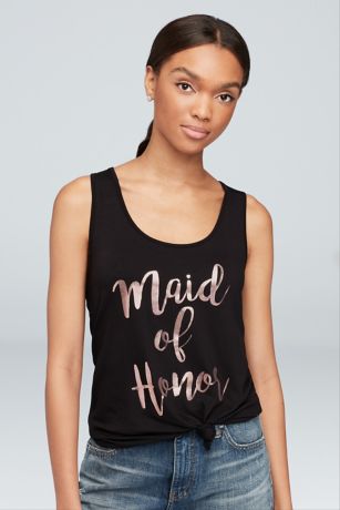 State it simply in shimmering rose gold foil print on a soft jersey tank top: you're the maid of honor!