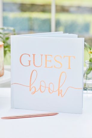 Adorned in rose gold foil script, this hard-backed guest book is a beautiful way for guests to leave their messages.