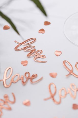 Sprinkle this rose gold "love" confetti around your wedding or shower venue as a stunning finishing touch.