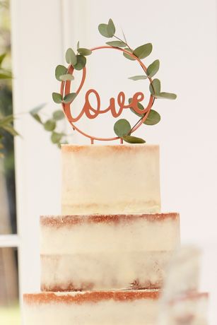 Featuring the word "love" and faux foliage, this rose gold topper will add a beautiful finishing touch to your cake.