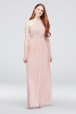 Round-Neck Lace and Chiffon Dress with Cutouts
