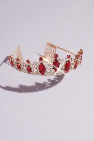 Stand out on your big day in this pop-color quinceaera crown. Large red center stones command attention, while smaller crystals throughout add even more sparkle and shine.