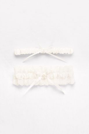 Tiny satin bows and pearls trim this classic lace garter set. Toss one at the reception and save the other as a keepsake.