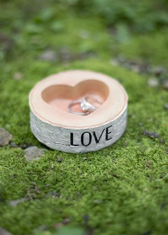 Add a rustic element to your ceremony with this faux-birch ring bowl. The resin-crafted bowl is painted with a realistic wood grain finish and has a carved heart-shape recess for rings to rest in. Etched on the front with Love in black. Makes a wonderful lasting keepsake from your special day.