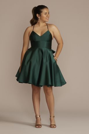 This satin A-line puts a bow on damas dress shopping! BFFs and family members alike will fall in love with the full skirt made for twirling and adorable back bow.