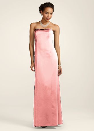 This long slim satin dress is simply designed so that it can be dressed up! Add a sash and fun jewelry to coordinate your bridal party! Can also be worn alone for a minimalist look at any social occasion. Fully lined. Back zip. Made in USA of polyester. Dry clean.