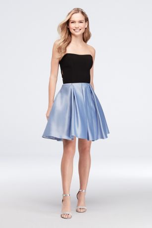A flirty fit-and-flare dress, featuring a pleated satin skirt and jersey bodice with cutout details at the side.