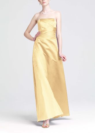 This beaded strapless satin ball gown is a classic silhouette. The organza beaded inset adds a glamorous touch to the all over satin look. This is a dramatic look that is sure to turn heads. Fully lined. Back zip. Imported polyester. Dry clean only.