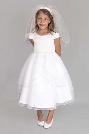 Satin and Tulle Cap Sleeve Communion Dress