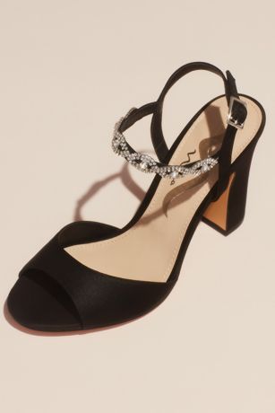 Satin Block Heel Sandals with Crystal Ankle Strap