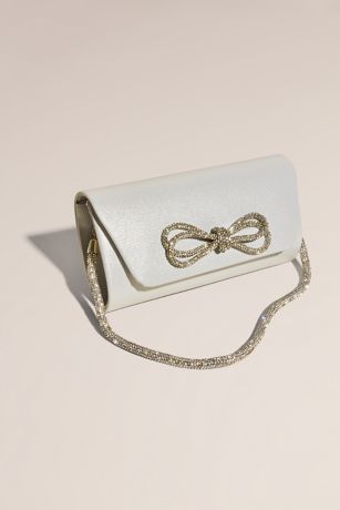 The rhinestone bow makes this classic satin clutch a new favorite for weddings and parties.