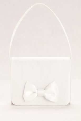 Your flower girl will love the chance to be one of the gals with this satin bow adorned handbag.