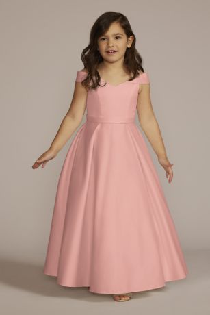 Satin Off-the-Shoulder Flower Girl Dress