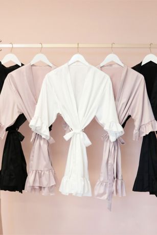 Get ready in style wearing this super-soft satin robe with ruffles at the cuffs and hem.