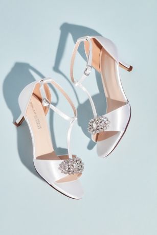 Satin T-Strap Sandals with Crystal Embellishment