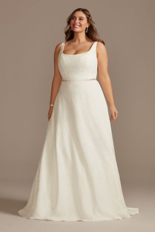 Scalloped Lace A-Line Square Neck Wedding Dress