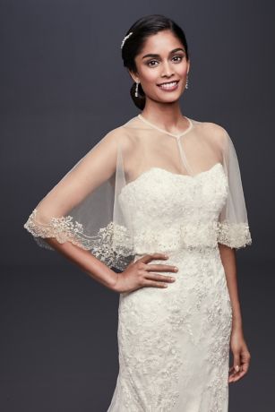 Adorned with sequins, pearls, and metallic embroidery, this flowy tulle capelet is the perfect barely there layer.