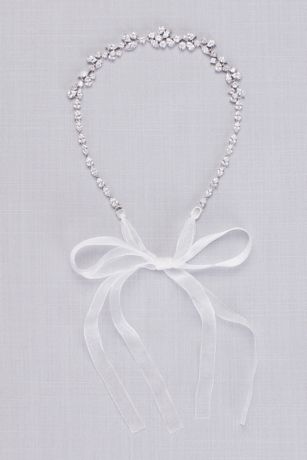 Pretty crystal petals and small solitaires make this organza-tied headband a sparkling conversation piece. Wear as a headband or remove the ribbons to wear as a hair vine.