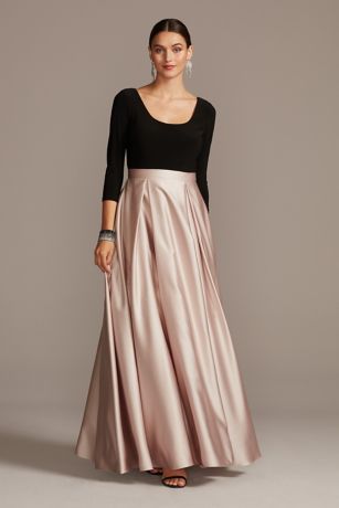 Scoop Bodice 3/4 Sleeve Gown with Satin Skirt