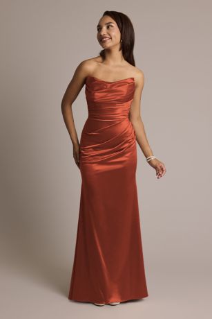 Flaunt your figure in our exquisite sculpting satin fabric, a blend of four-way stretch and high compression that does the work of shapewear. With a sculpted cat-eye neckline, sexy booty ruching, a mermaid silhouette, this strapless bridesmaid dress will make you look and feel incredible.