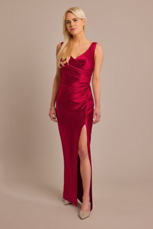 Our sculpting satin fabric takes this low-back tank bridesmaid dress to the next level. With high shine and high compression, there's no need for shapewear! Plus, the cowl back is just gorgeous.