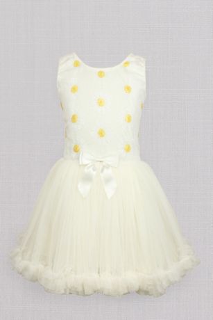 Bright sequin florals adorn the bodice of this of this super-cute flower girl tutu dress, while a satin bow decorates the waist.