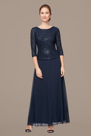 Sequin Lace 3/4 Sleeve Dress with Chiffon Skirt