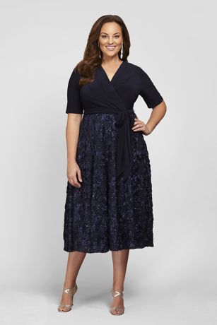 Sequin Lace Jersey Fit-and-Flare Plus Size Dress