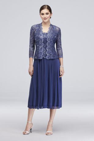 Sequin Lace Tea-Length Dress and Matching Jacket