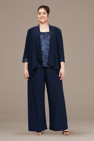 A perfectly coordinated scoop neck sequin tank and open-front matte jersey plus size jacket.